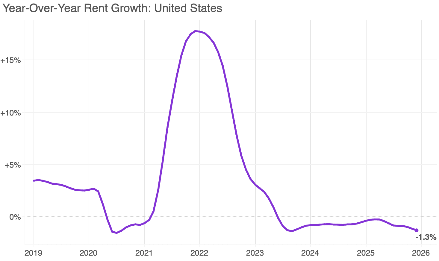 Rents/vacancy: National median rent down ~0.8% MoM Apartment List